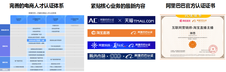 截至到2020年12月,超过80%的天猫店铺和45%的淘宝店铺都参与了阿里巴巴认证平台上的各项专业岗位和专项能力的培训认证。