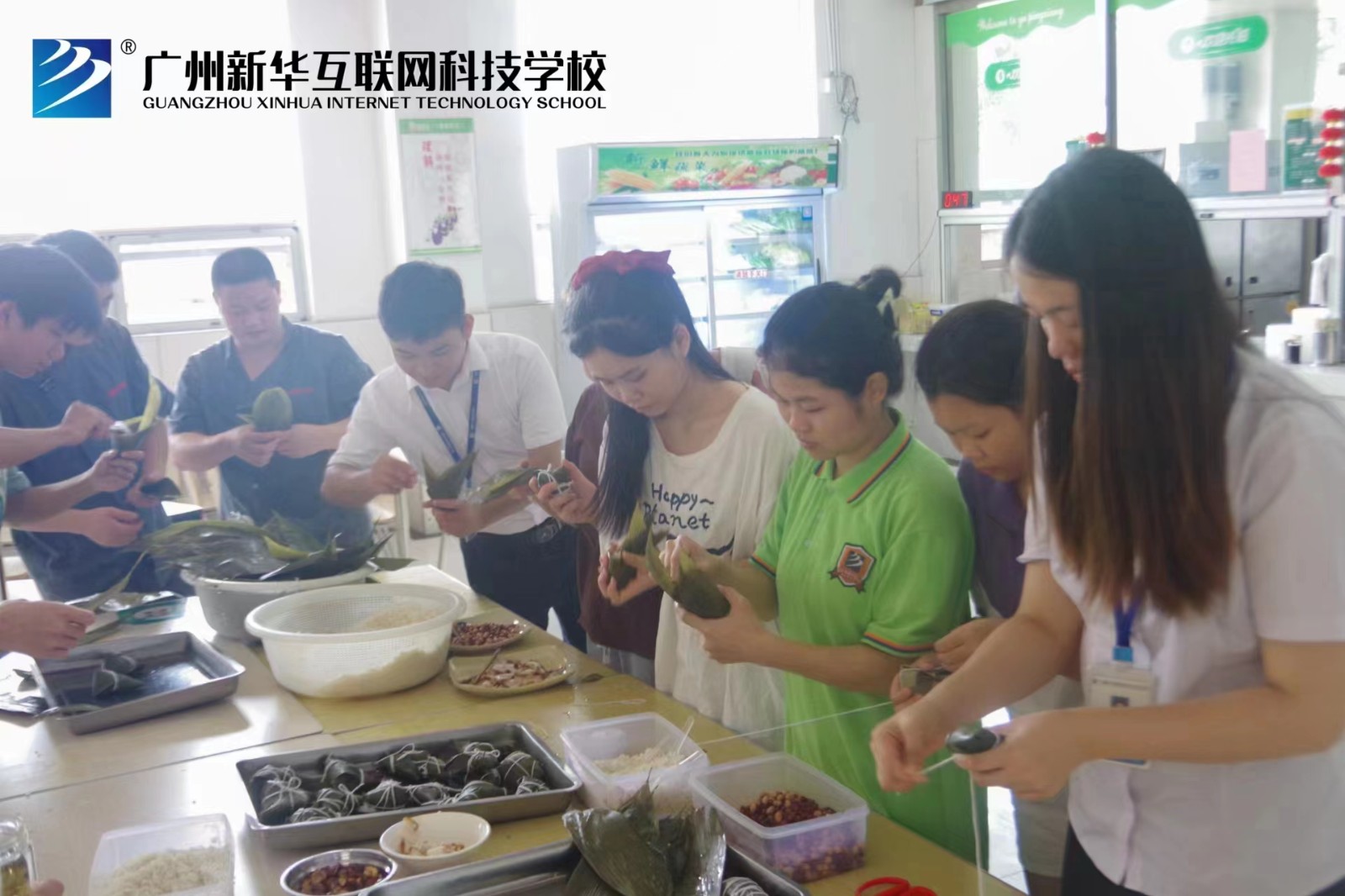 纸上得来终觉浅,绝知此事要躬行。包粽子活动既锻炼了学生的动手能力,又让学生感受到了端午节独有的传统习俗,加深了学生对中华传统文化的理解,激发了学生的文化自信和爱国情感。活动中,师生之间互相交流,分工合作,共享成果,增进了师生情谊,凝聚了同学们的同窗友谊。端午佳节之际,广州新华互联网科技学校也祝所有的同学、家长、老师们端午安康!